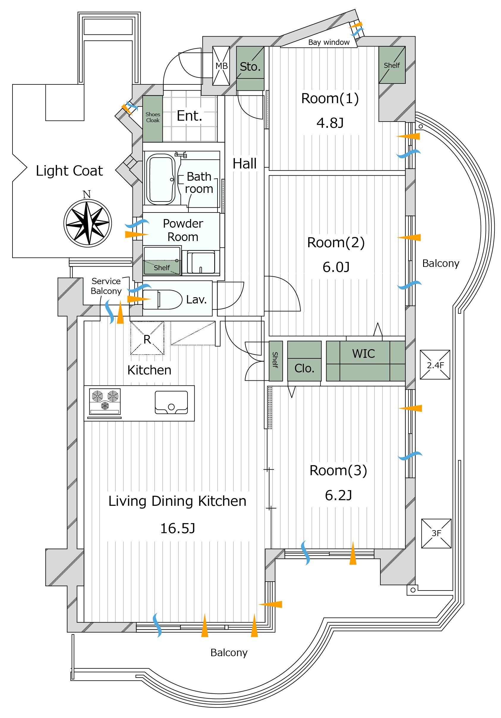 ●Planning リビングと融合した魅せるオープンシステムキッチン採用。